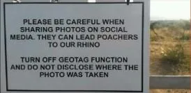 GPS enabled smart phones add physical coordinates of where the photo was taken. Tourists then post photos to social media which are used by poachers to track down wildlife such as rhino. Turning off your Geotag locator protects Tanzania’s wildlife.